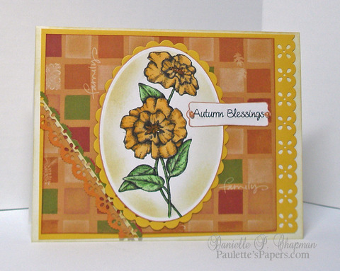 Stephanie used the sentiment "Friends are Flowers in the Garden of Life" by artist Nina Brackett. I love the elegance and the ribbon flower is fabulous. Be sure to check out an inside peek of the card on Stephanie's blog.